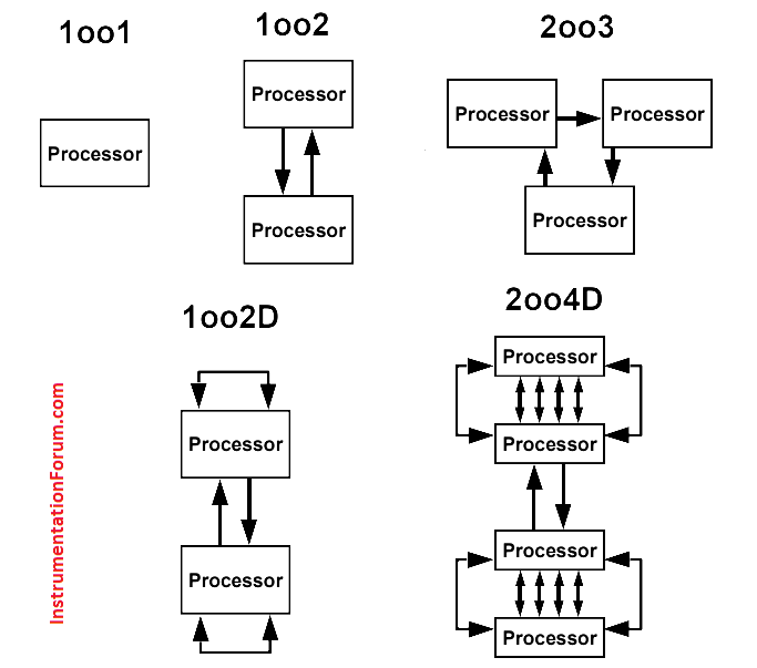 There are 1oo1, 1oo2, 2oo2, 2oo3 etc voting logic in the safety instrumented system architecture.