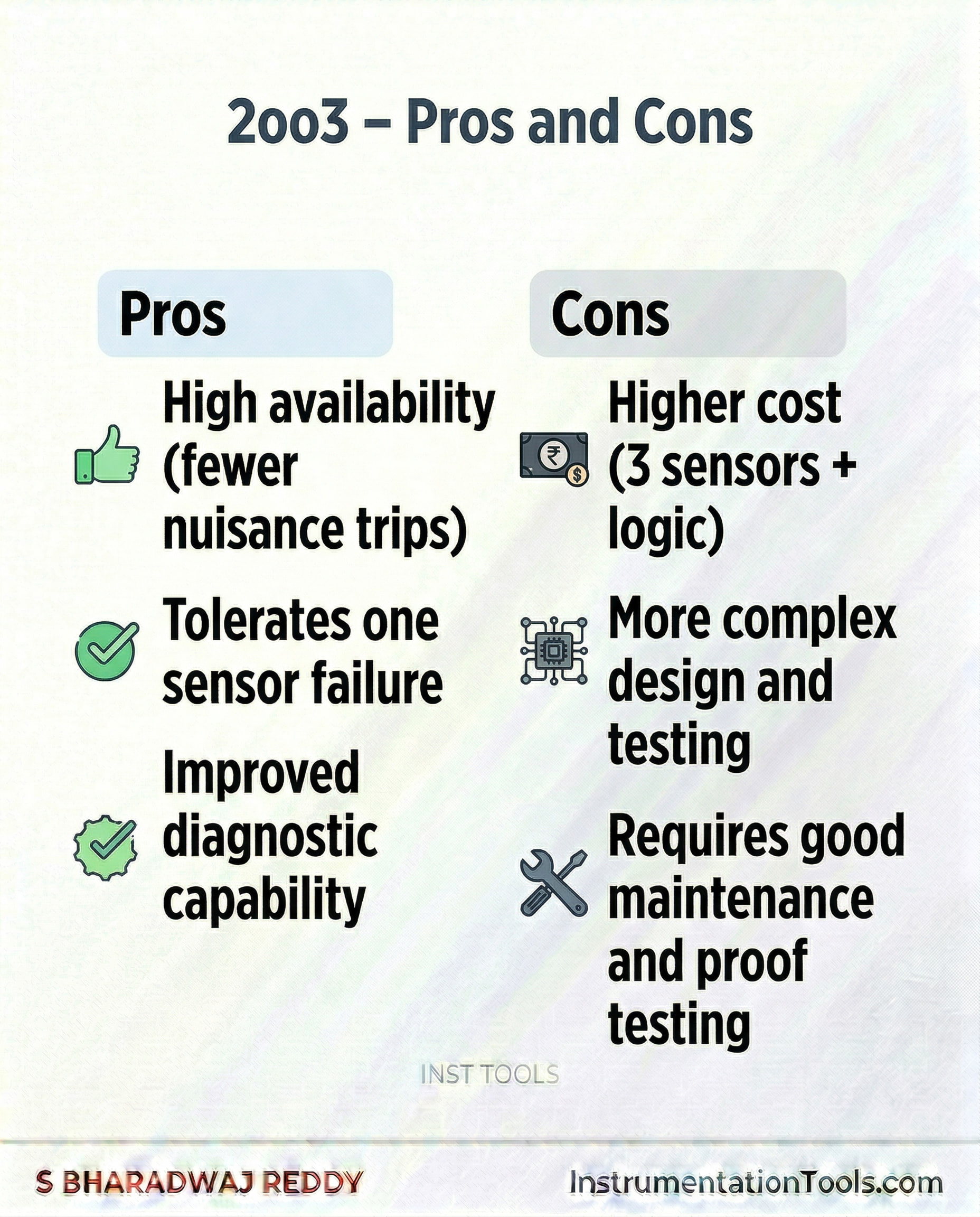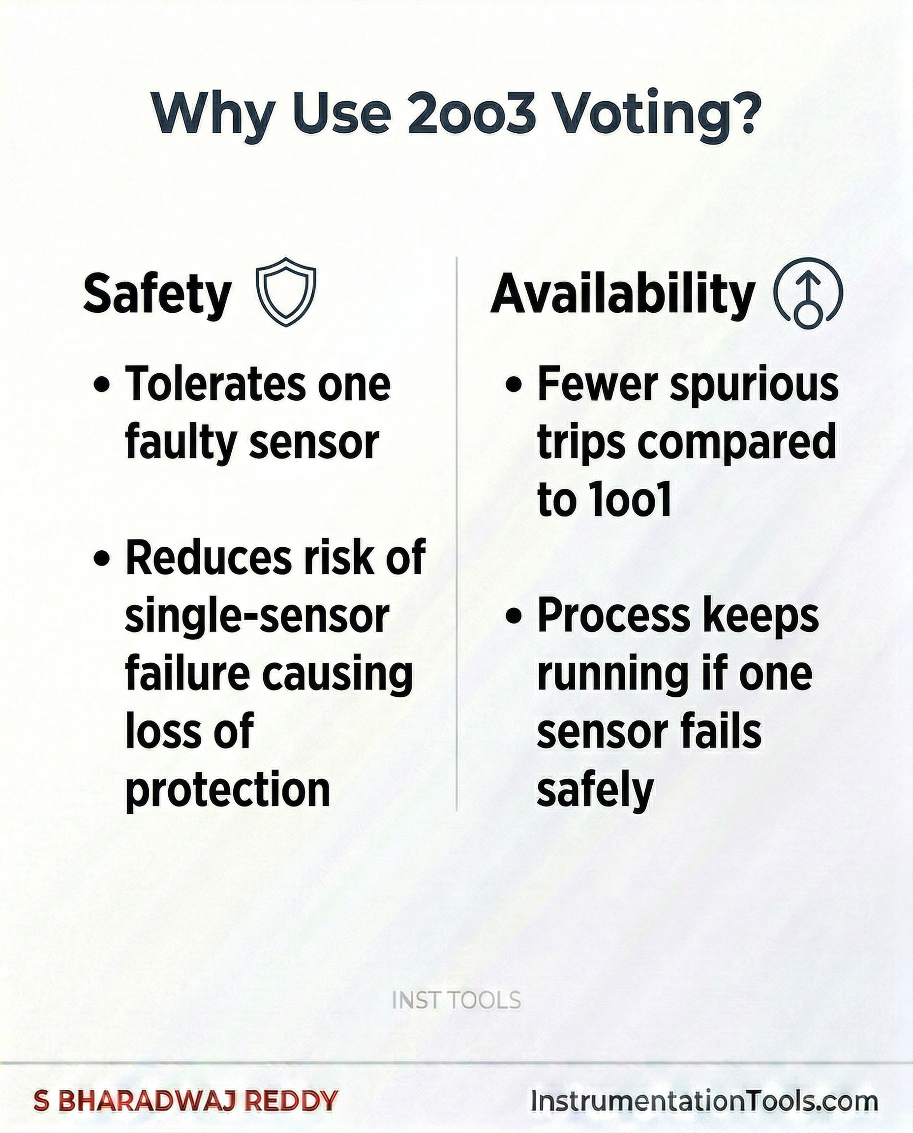 To improve reliability and safety, systems often use 2oo3 voting logic.
