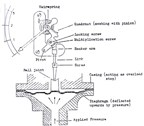 The working principle pressure gauge with diaphragm is shown in Figure 1 based on the resilience properties of metal / thin plate due to the curvature of iteration pressure at membrane plane, the membrane device is used to measure the difference of two different pressures.