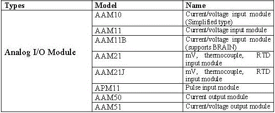 List of I/O Modules Installable in Analog I/O Module Nest: