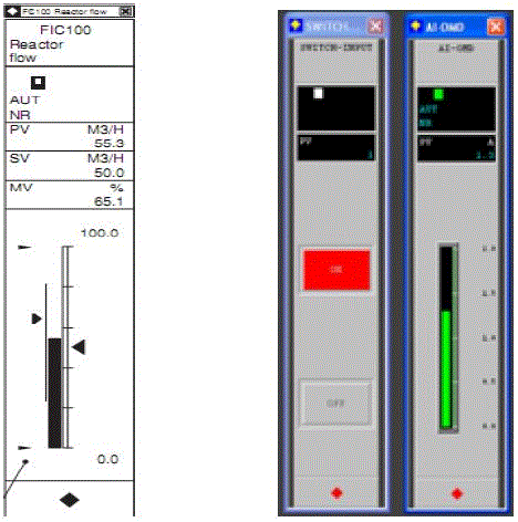 How the faceplate looks like:Faceplate window is a type of window, where the process variation, switch status has been displayed.
