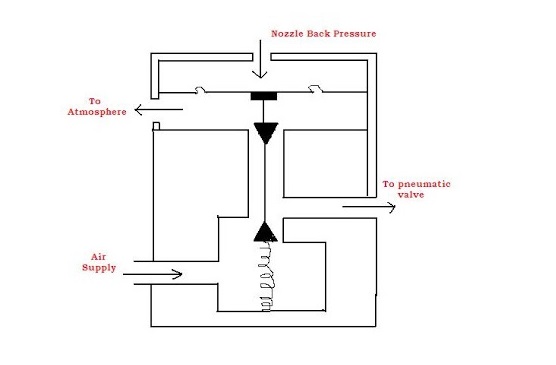 When the nozzle back pressure is decreases, that back pressure acts on the metal diaphragm. The metal diaphragm moves in up direction because the pressure is decreases. The air supply is given to the spring from the bottom side of the relay.