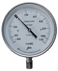The sensing element is a capsule which is made up of dual SS316L laser welded diaphragms. Such type of gauges are preferred for their Accuracy in low pressure measurement.