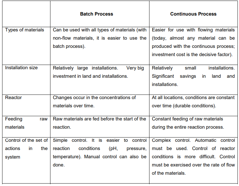 What are the difference between Batch process and continuous process used in process control industries.