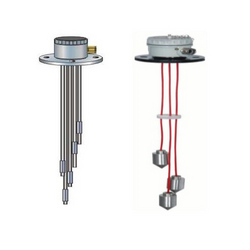 The two-electrode system shown operates a pump to maintain a desired level in a vessel -from a simple on-off action where one electrode and the container complete a circuit via the conductive material to multi-electrode assembly where several switch actions occur at various container levels.