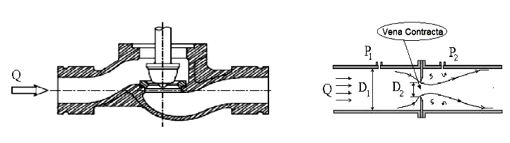 To display the general behavior of flow through a control valve, the valve is simplified to an orifice in a pipeline as shown in the figure below: