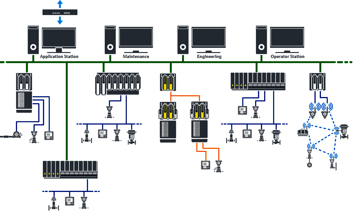 The DCS stands for Distributed Control System which is the mean to control your plant operations by using the the distributed (spread across your plant) controllers throught the system with having the Network for communication and monitoring the system.