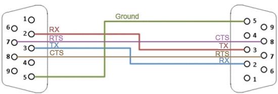 To enable handshaking between the two devices, the Request to Send (RTS) pin of one device must be connected to the Clear to Send (CTS) pin of the other device. Because these pins are “crossed” on the two cable terminals, the name crossover cable is used.