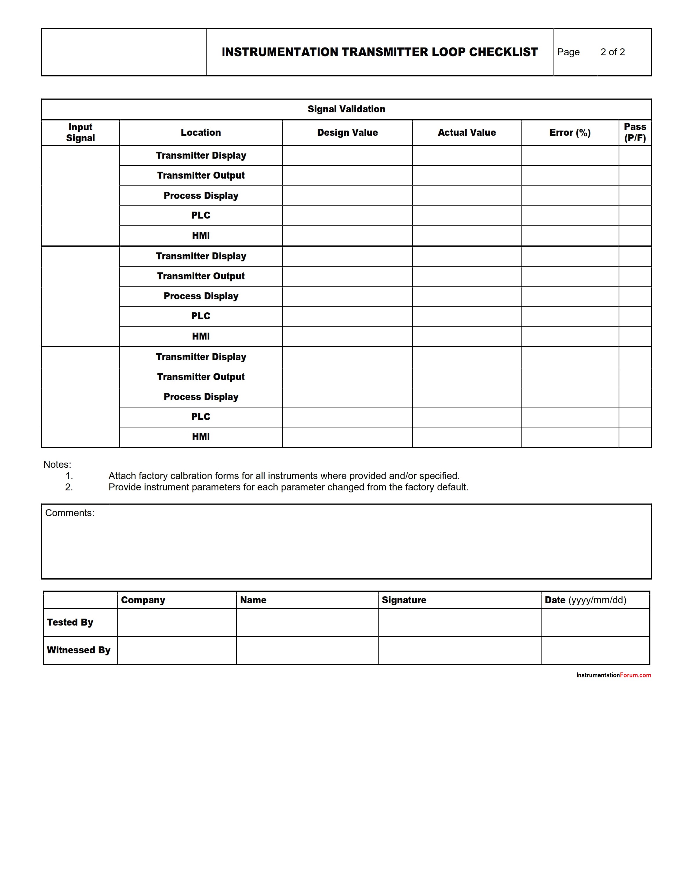 Here’s a basic checklist for reviewing an instrumentation transmitter loop: