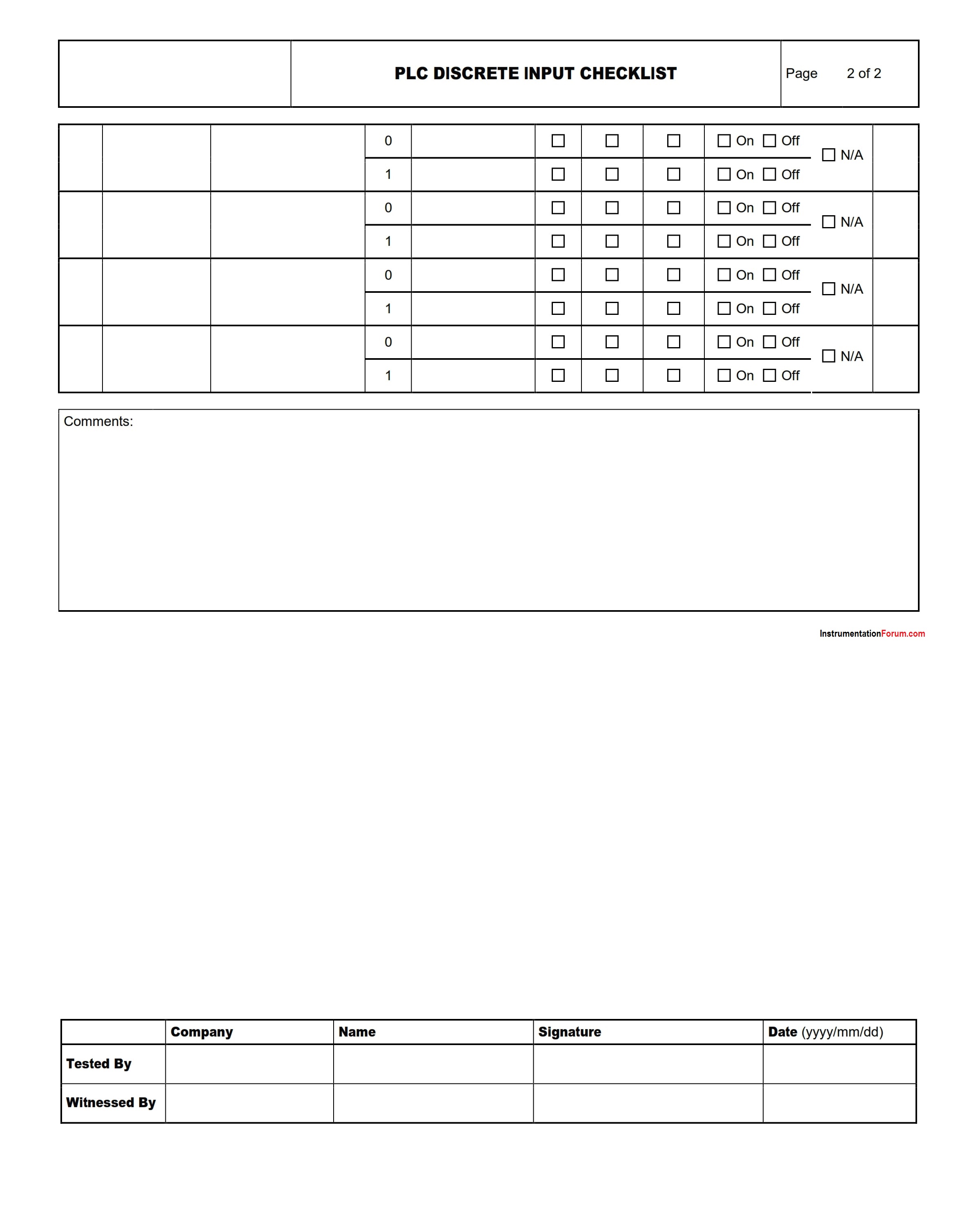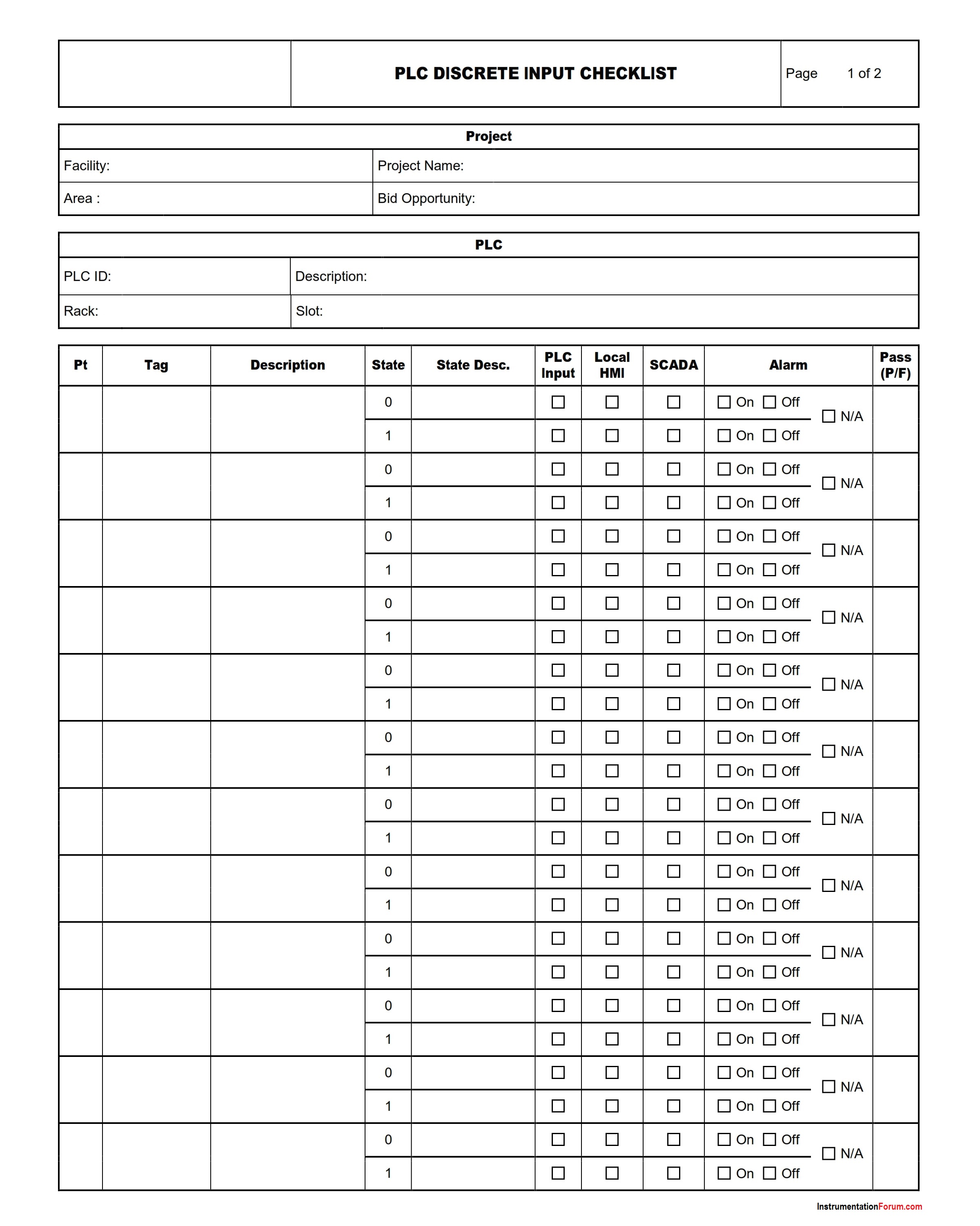 The PLC Discrete Inputs Checklist is used to do a functional test of digital input (DI) signals of a programmable logic controller and record display status of SCADA, Alarms, etc.