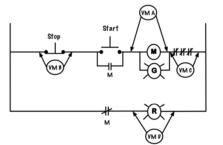 - If the control circuit shown below tripped due to overload, then which of the voltmeter