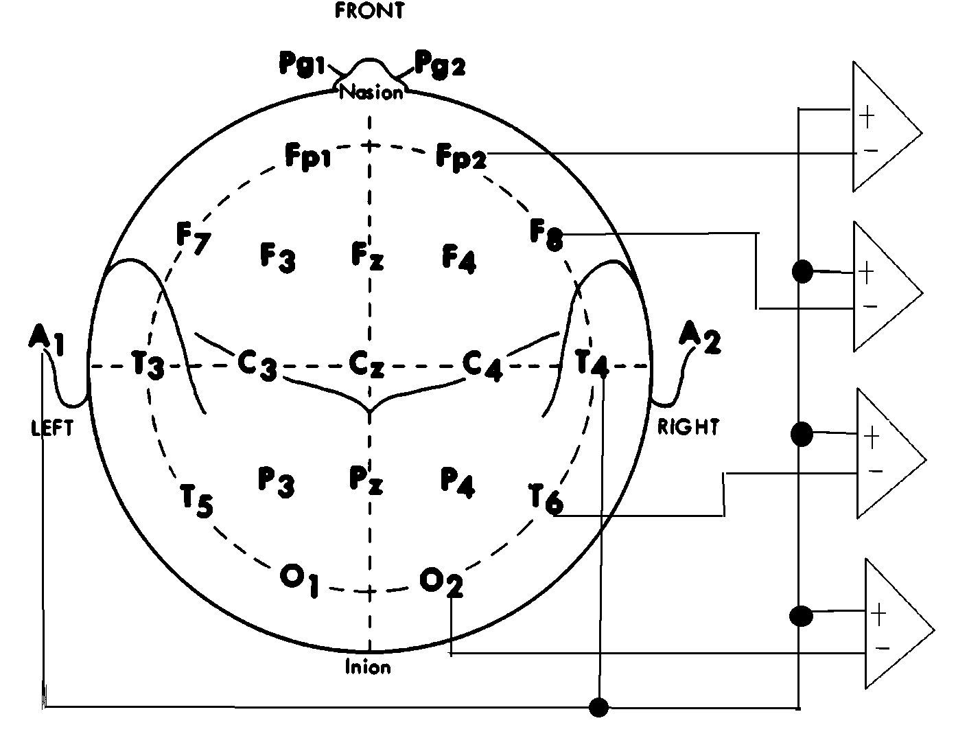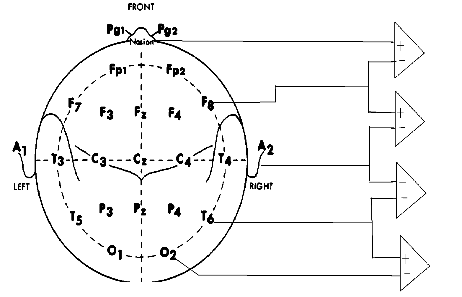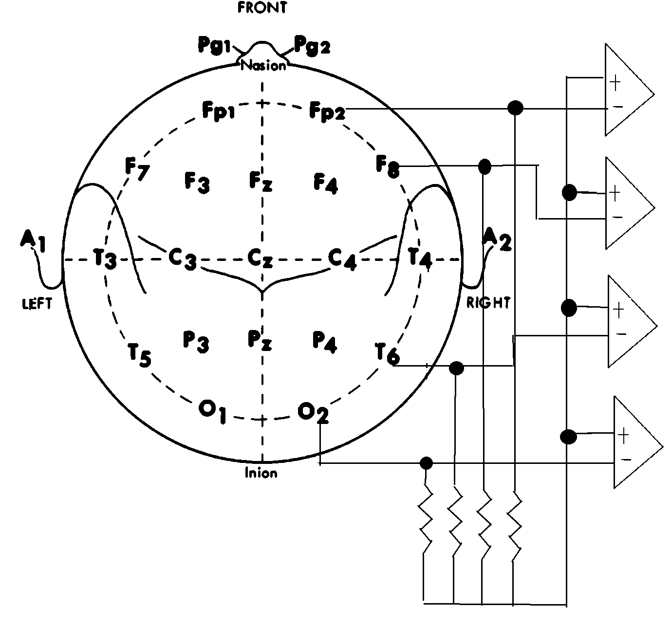 - A bipolar scheme is available by interconnecting scalp electrodes.