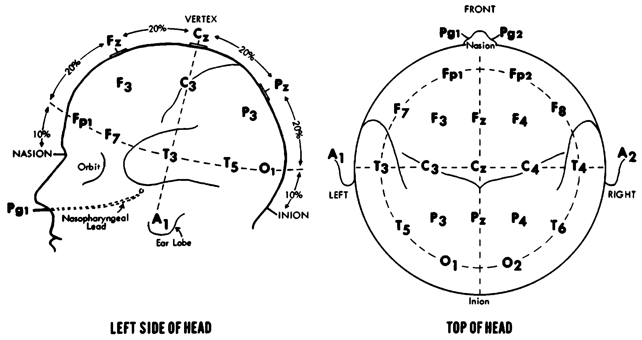 - For EEG the electrodes are placed at 10%,20%, 20%, 20% and 10% from inion to nasion along lenght.