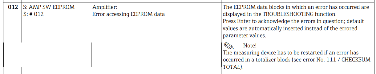 Can any one help me to solve the SW EEPROM 012# error in Endress Hauser Flow Meter.