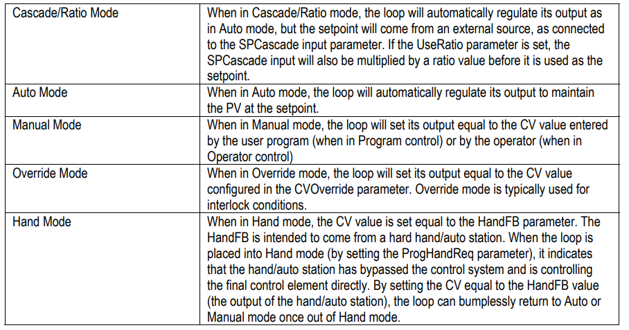Every PID controller can be operated in different modes like AUTO, MANUAL, CASCADE etc.