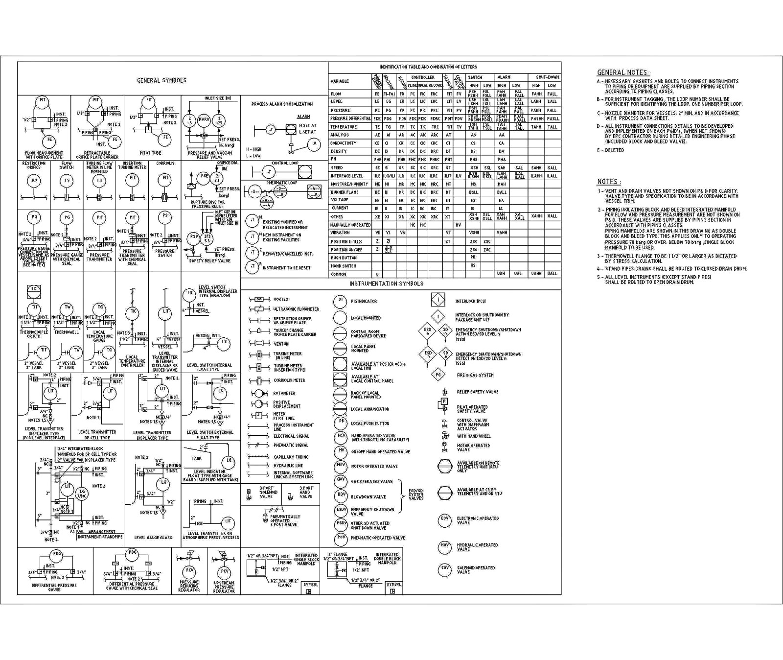 Mention the Piping Instrument Diagram Common Symbols or piping and instrumentation symbols used in drawings.