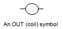 • The Out instruction is sometimes also called an Output Energize instruction . The output instruction is like a relay coil . Its symbol looks as shown below.