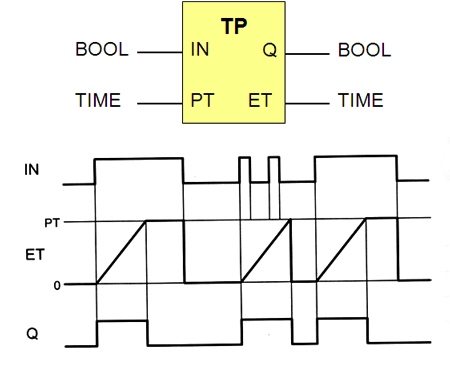 • After the input signal IN has reverted to the value 0, the output remains at 1 for the duration PT and does not return to 0 until it expired.