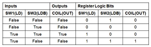 • When the physical input is on we can say that the instruction is True.