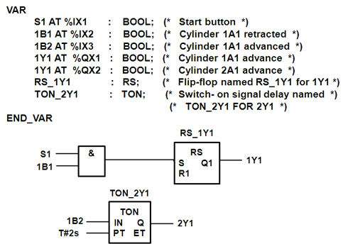 • The position of cylinder is signaled via the sensors 1B1 (retracted) and 1B2 (extended).