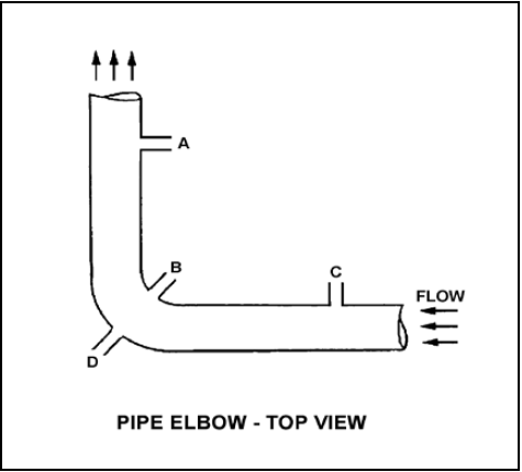 Refer to the drawing of a horizontal pipe elbow (top view) in an operating water system (see figure below).
