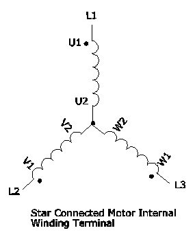 Illustrated on the star-delta circuit diagram above, the three-phase line voltage L1, L2, L3 is supplied from the main circuit breaker down to the main magnetic contactor and finally to the three primary terminals of the motor coils U1, V1, W1. Meanwhile, the closing of the star contactor shorts the other three secondary terminals of the motor terminals U2, V2, W2.