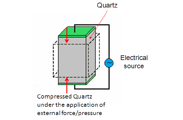It contains piezoelectric ionic crystal materials such as Quartz.